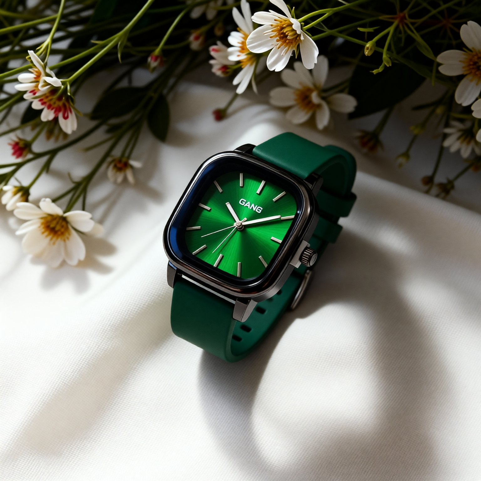 The GASIQ Square Dial Analog Watch is designed for those who appreciate simplicity with a modern edge. The watch features a rich green gradient dial that subtly shifts in tone, adding depth and character while maintaining a clean, minimalist look.
