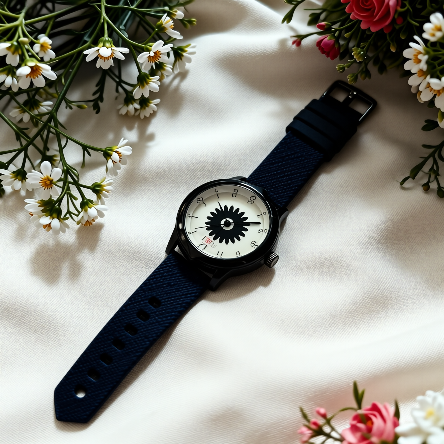 Dial Style: White dial with floral (daisy/chamomile) pattern
